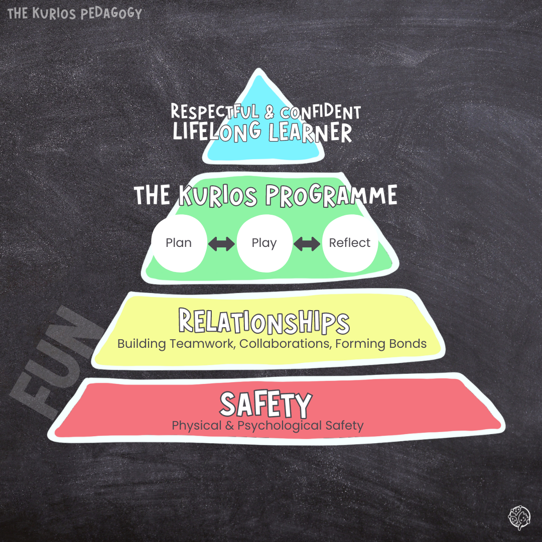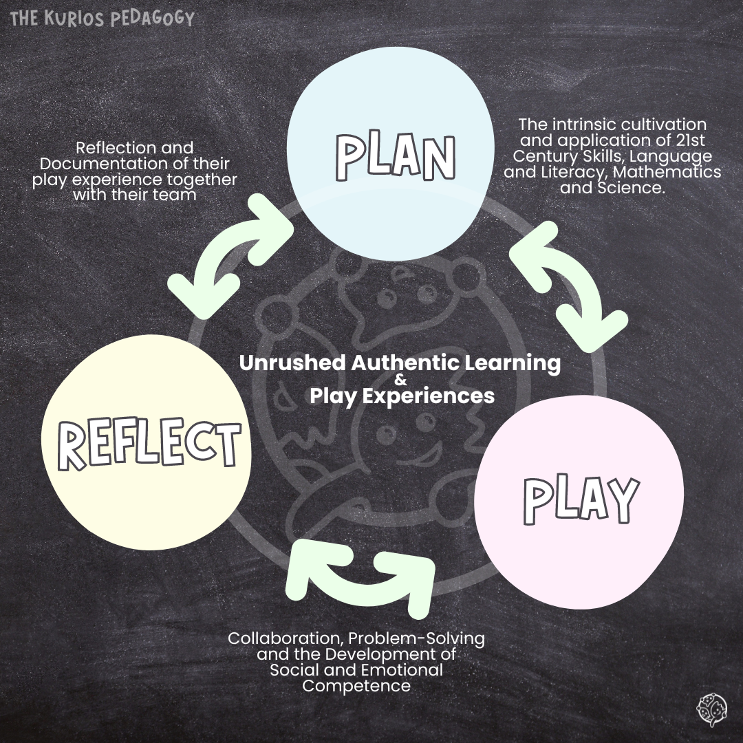 Following the establishment of a safe and trusting environment, we introduce the Kurios Programme. Recognizing children's innate abilities to question, reason, think, and make decisions, we observe and support these capabilities through close observation. A hallmark of our constructivist approach is involving children in both planning and reflection. This dynamic interplay of planning, playing, and reflecting fosters continuous growth and learning, illustrating the interconnectedness of these activities.